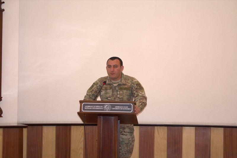 Türk Dünyası İqtisad Fakültəsinin baş müəllimi Nəriman Xanəhmədov çıxışında Aprel döyüşlərinin əhəmiyyətindən danışıb, UNEC-in vətən uğrunda şəhid olan tələbələrinin qəhrəmanlığını xatırladıb. Bildirilib ki, Qarabağ döyüşlərində universitetin 48 tələbəsi şəhid olub.